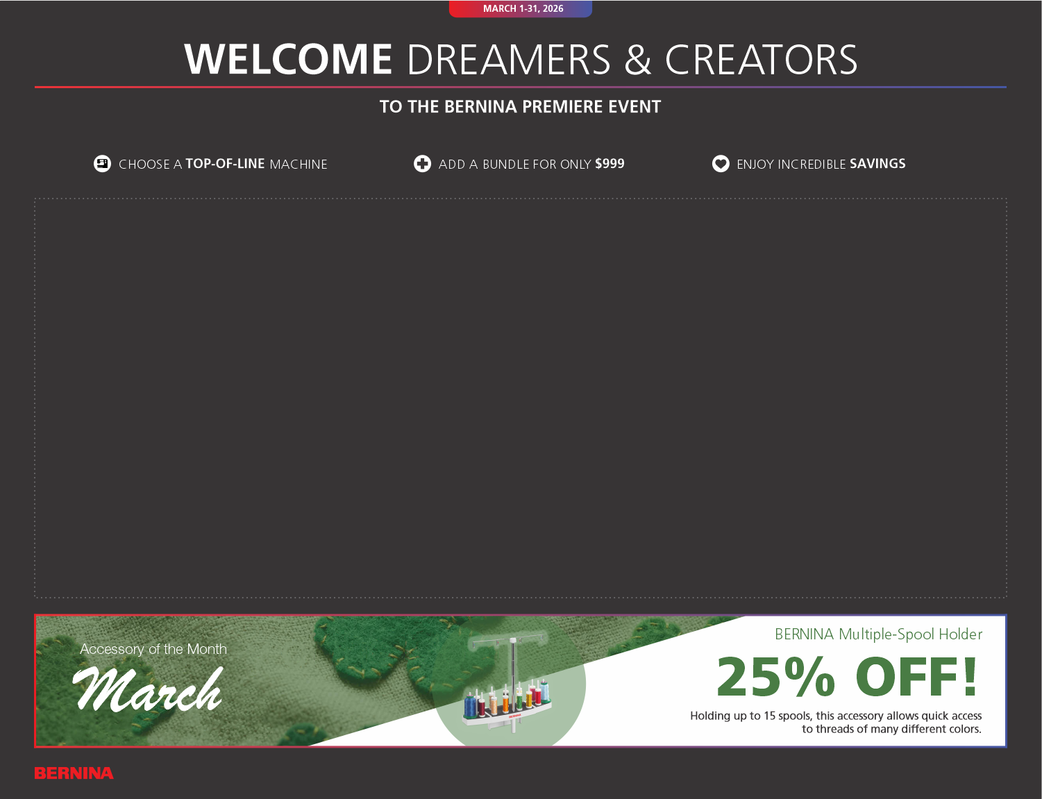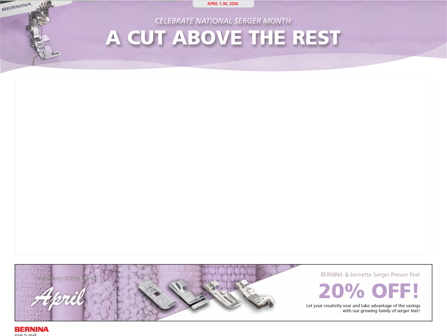 We are a full service BERNINA dealer serving the area for 26 years. We carry the full line of BERNINA machines and accessories and have comprehensive classes to teach you everything you need to know about the BERNINA products sold in the store.